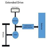 In the Extended drive-Mode, again all the energy needed by the traction PMSM motor is derived from the Batteries. This mode differs slightly from the Full drive Mode in that in that the energy generated by the Generator can also be diverted to charge the Batteries. In this mode, one can rest assured knowing that as long there is fuel in the tank, the car will continue to move to its final destination