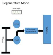 In the Regenerative Mode and also known as dynamic braking, the kinetic energy is transformed by the traction PMSM motor to electrical energy. This energy is further conditioned by the same Drive Inverter (FOC Inverter) to DC which in turn is fed to the DC/DC converter to charge the Batteries.